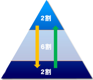 物事のすべては2:6:2の法則、8:2の法則で出来ているといわれています。2割の人に嫌われれば2割の人に好かれる。2割の人が犯罪をして、2割の人が大富豪になる。そして、アリで例えると2割が働き者、6割が働いているフリ、2割がなまけものになるのが自然の法則です。